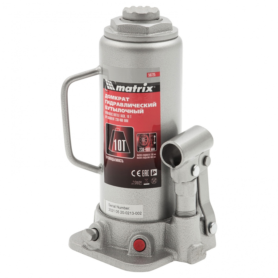 Домкрат гидравлический бутылочный, 10 т, высота подъема 230-460 мм Matrix