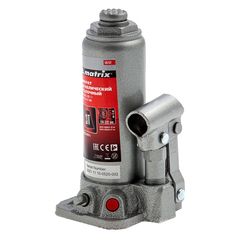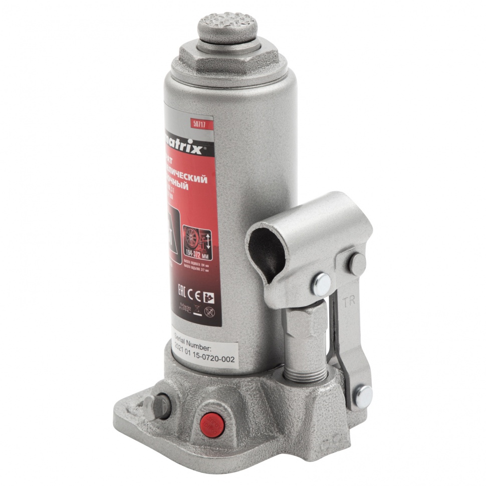 Домкрат гидравлический бутылочный, 3 т, высота подъема 194-372 мм Matrix