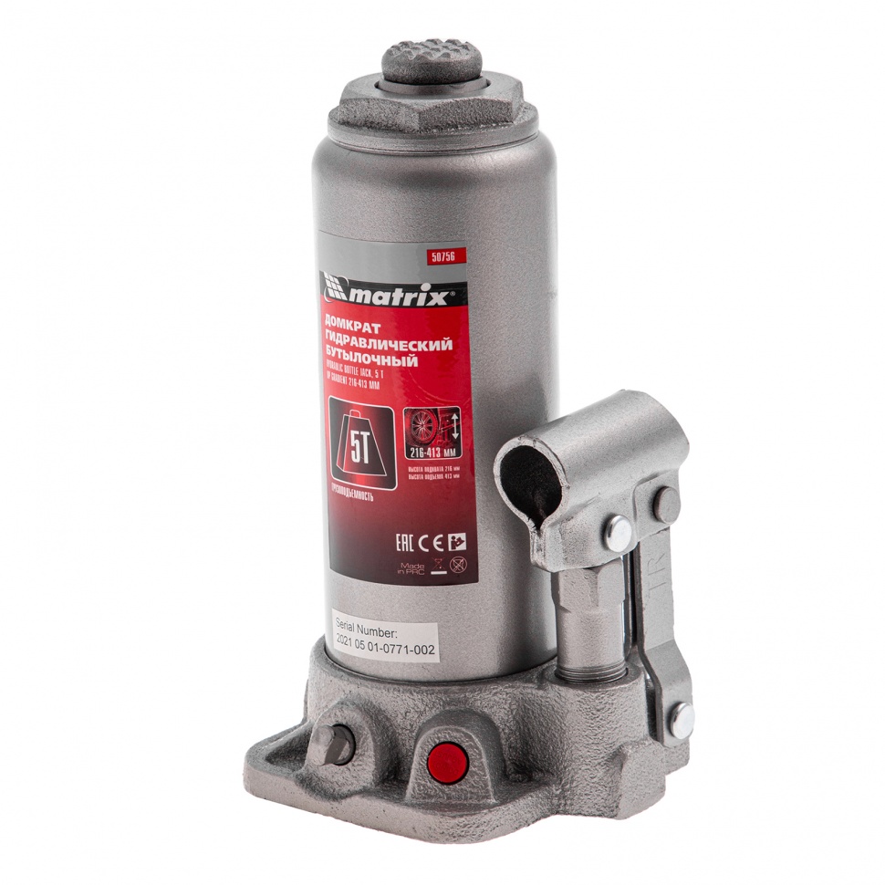 Домкрат гидравлический бутылочный, 5 т, высота подъема 216-413 мм Matrix