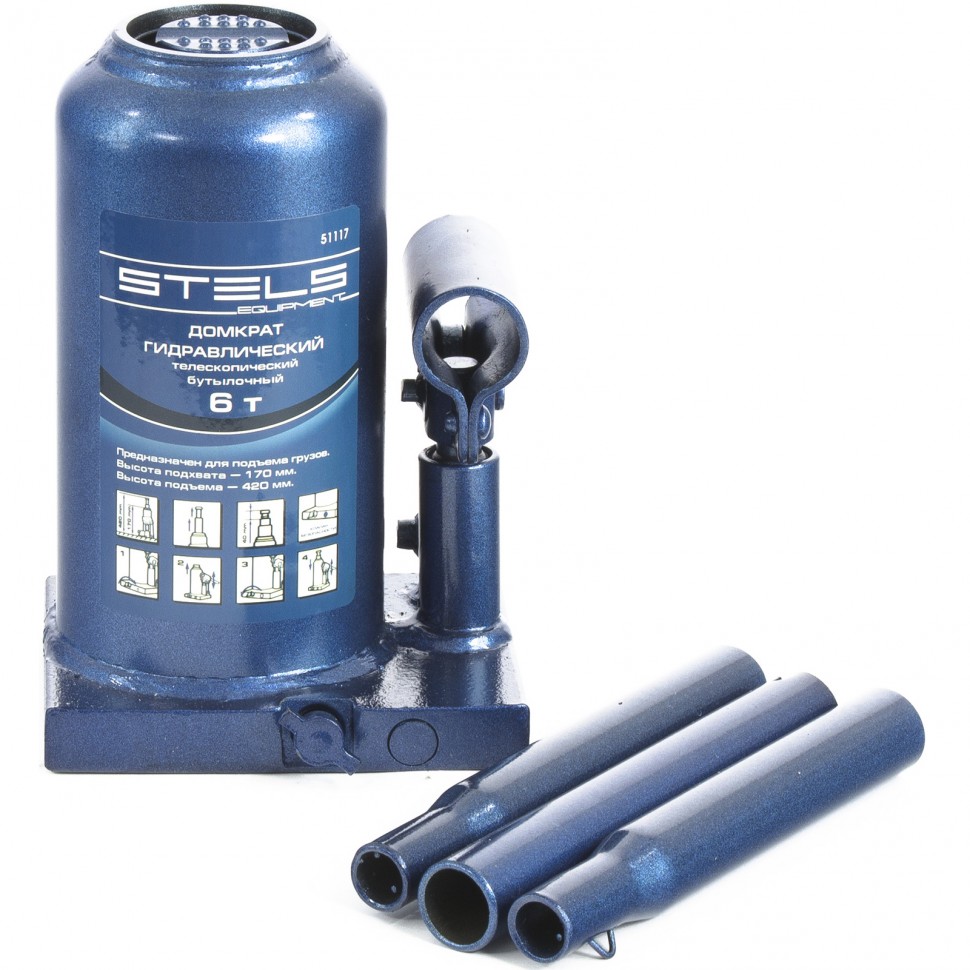Домкрат гидравлический бутылочный телескопический, 6 т, H подъема 170-420 мм Stels