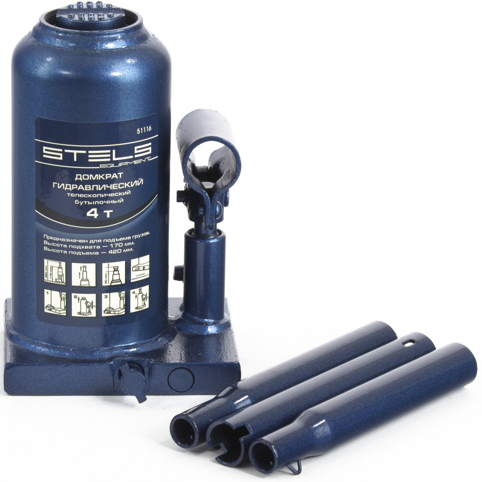 Домкрат гидравлический бутылочный телескопический, 4 т, H подъема 170-420 мм Stels