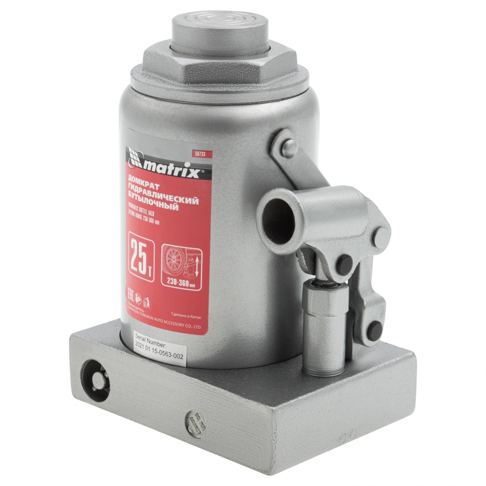 Домкрат гидравлический бутылочный, 25 т, высота подъема 230-360 мм Matrix