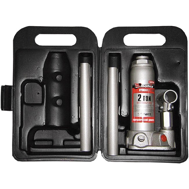 Домкрат гидравлический бутылочный, 2 т, высота подъема 181-345 мм, в пластиковый кейсе Matrix