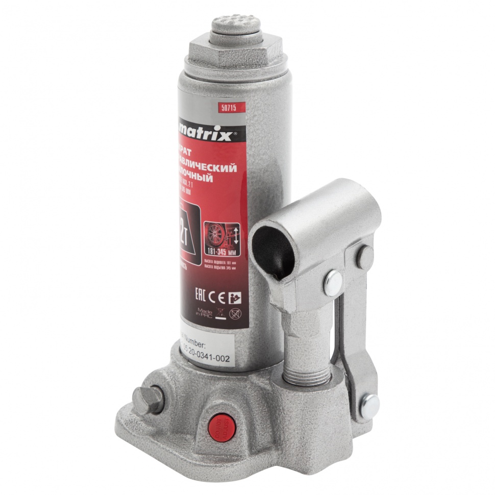 Домкрат гидравлический бутылочный, 2 т, высота подъема 181-345 мм Matrix