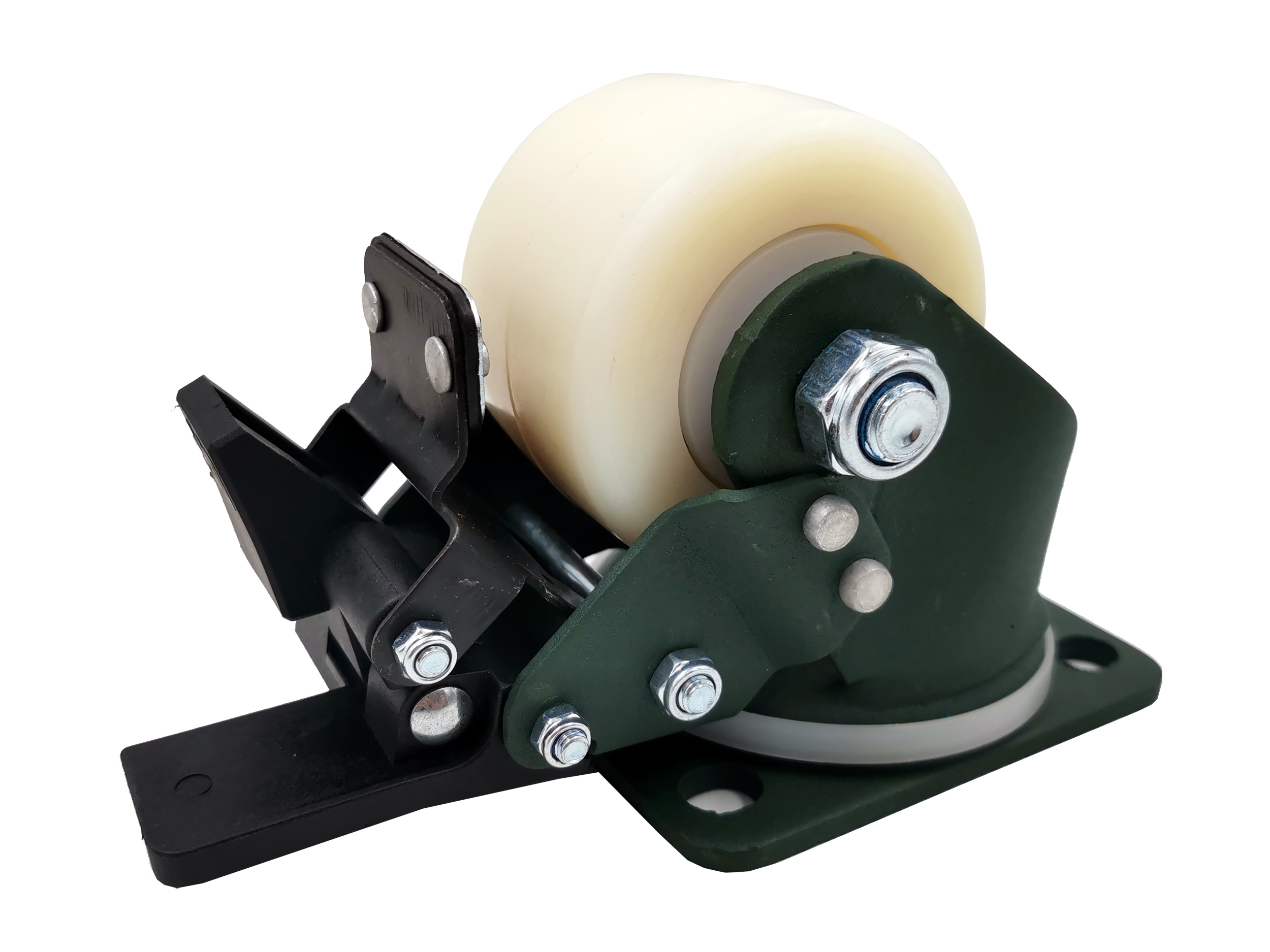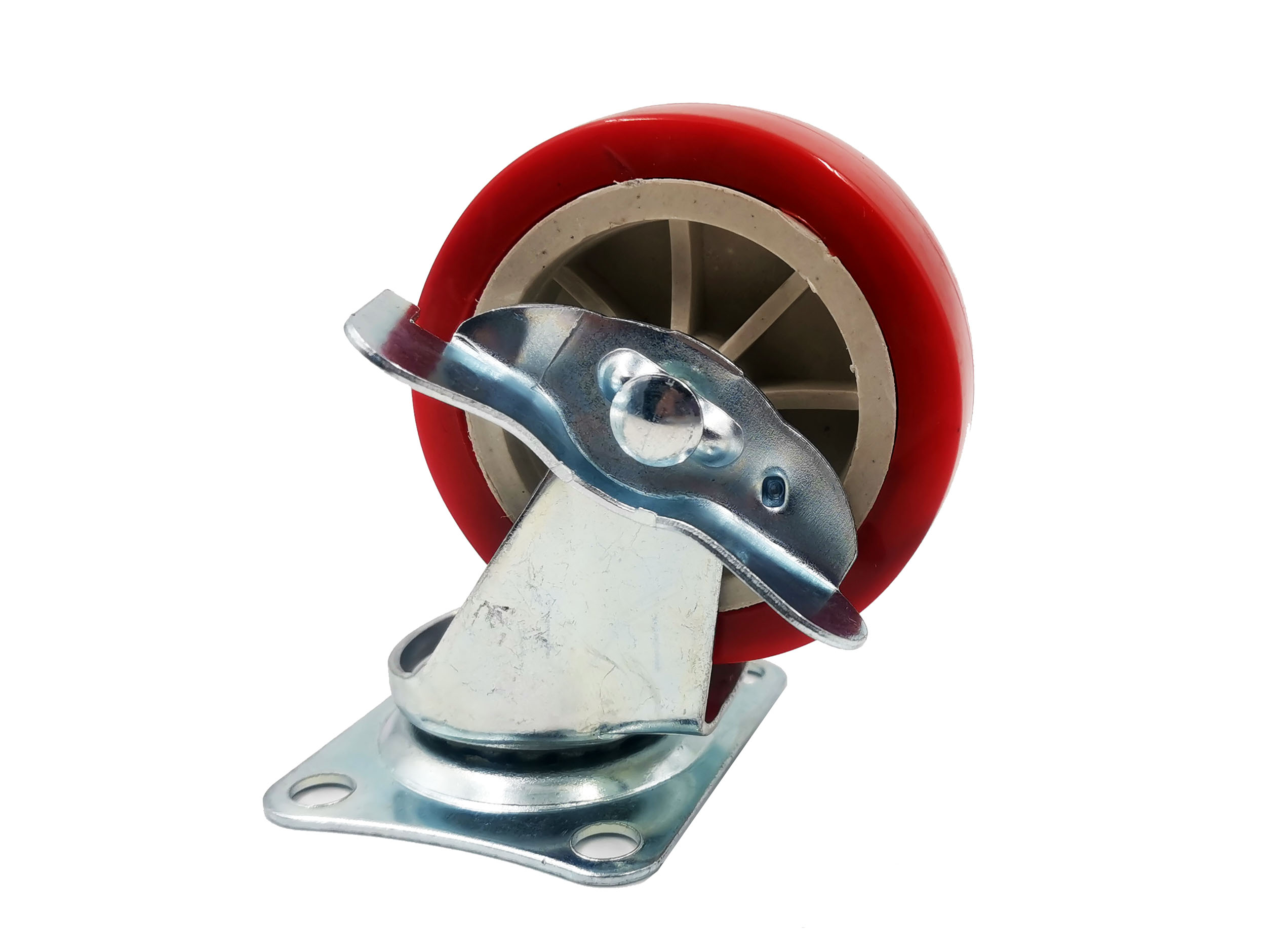 Колесо поворотное 1114075 (г/п 500кг, Ф 75мм), крепление платформа с тормозом, шариковый подшипник