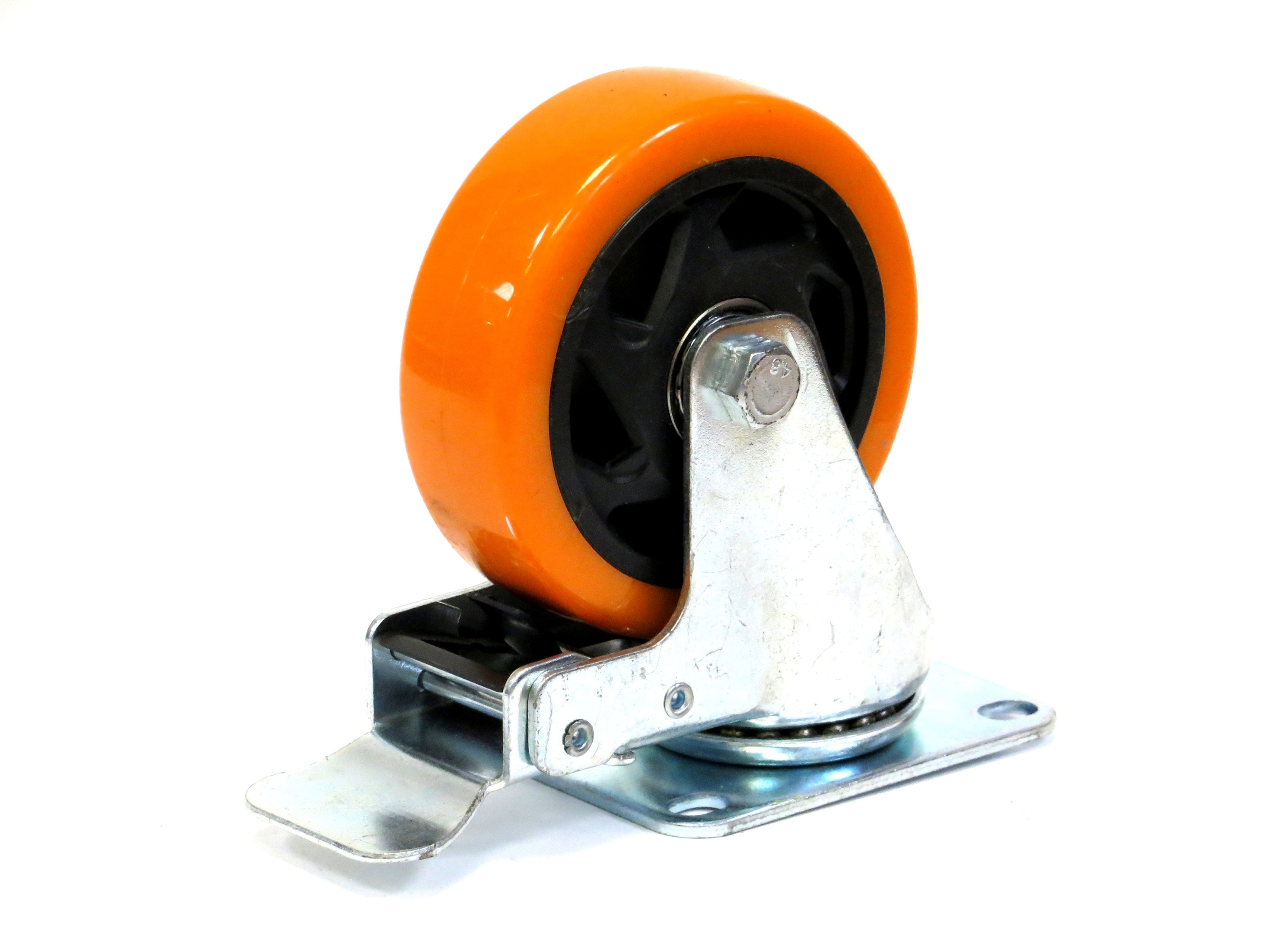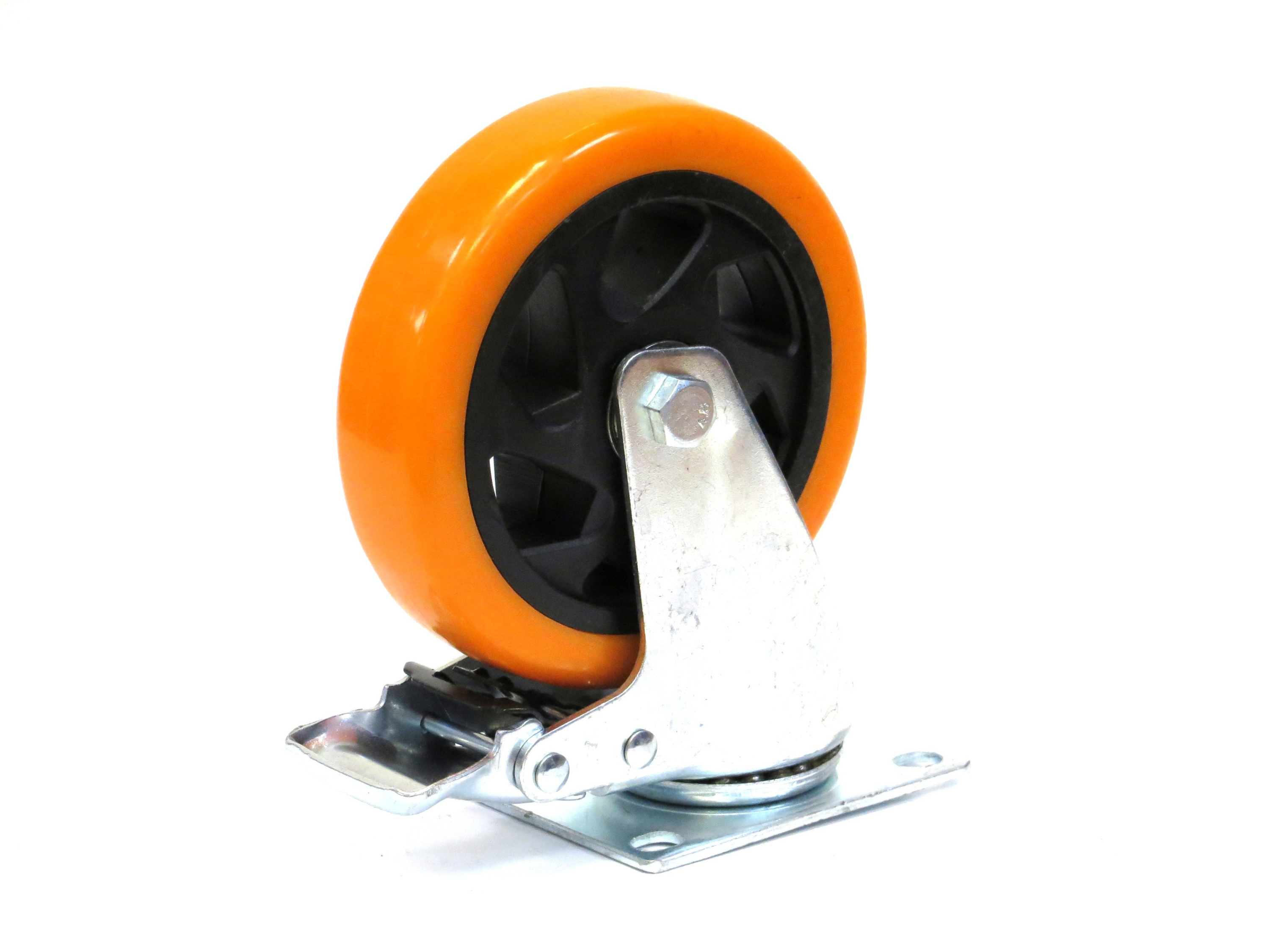 Колесо поворотное HC-3302-PUR-100-F-OR (г/п 125кг, Ф 100мм), крепление платформа с тормозом