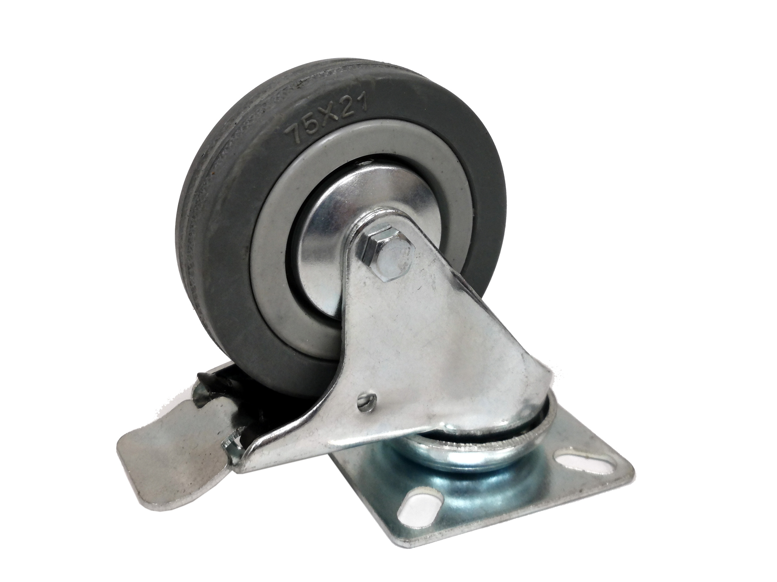 Колесо поворотное EMES ET01-MKT-75-F (г/п 80кг, Ф 75мм), крепление платформа с тормозом
