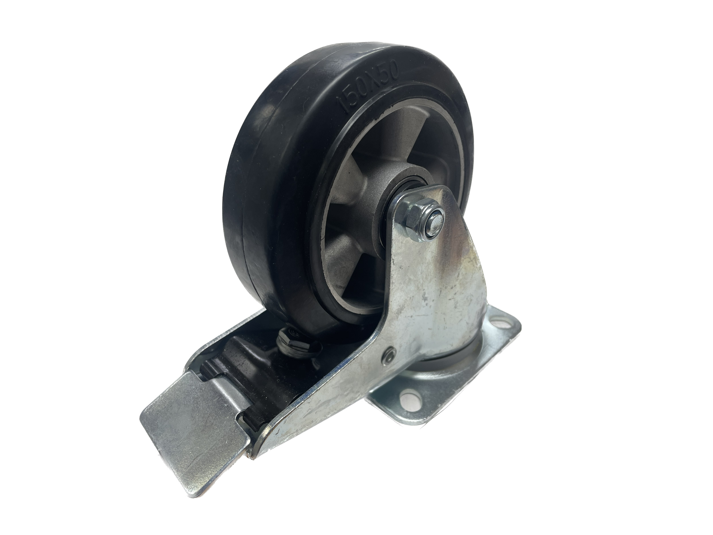 Колесо поворотное SCDB-R-63 (г/п 230кг, Ф 150мм), крепление платформа с тормозом (912160В)
