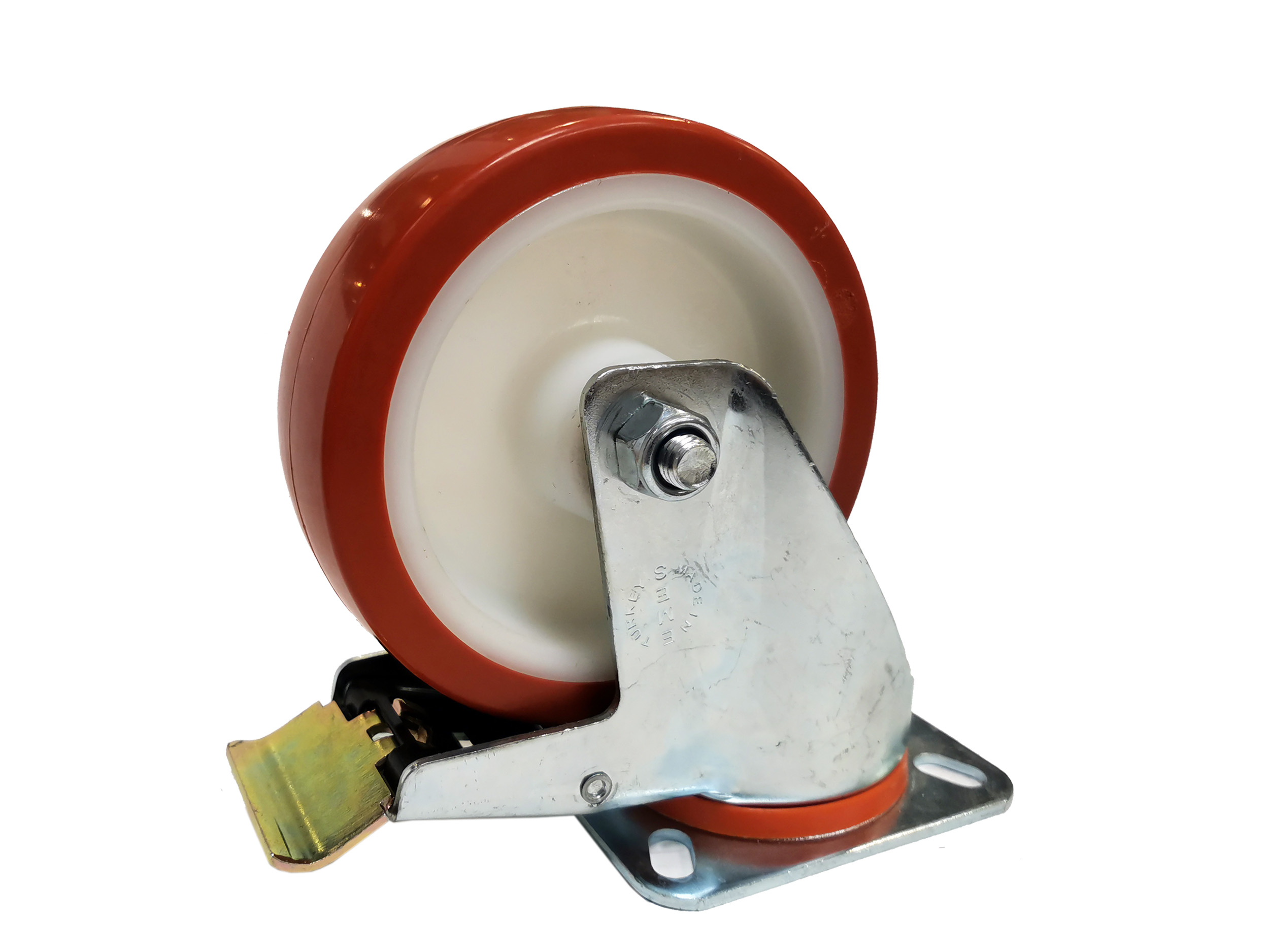 Колесо поворотное EMES EM01-ZKP-100-F (г/п 110кг, Ф 100мм), крепление платформа с тормозом