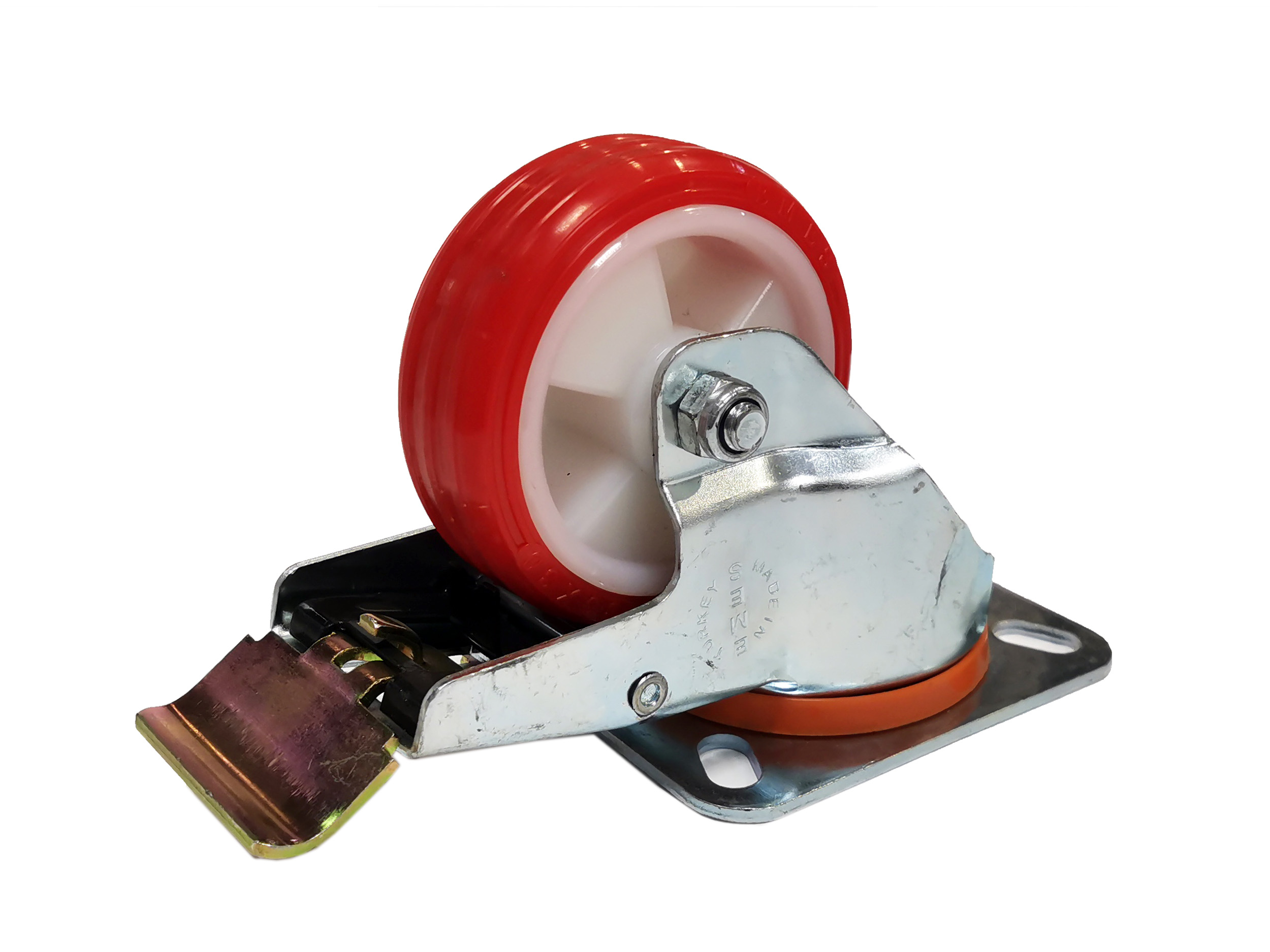 Колесо поворотное EMES EM04-ZKP-80-F (г/п 90кг, Ф 80мм), крепление под болт с тормозом