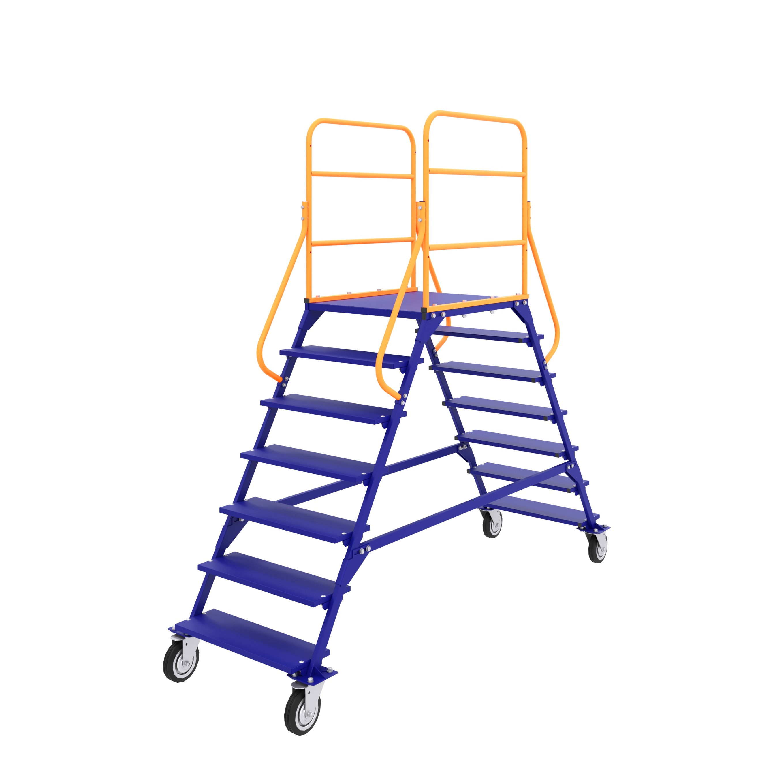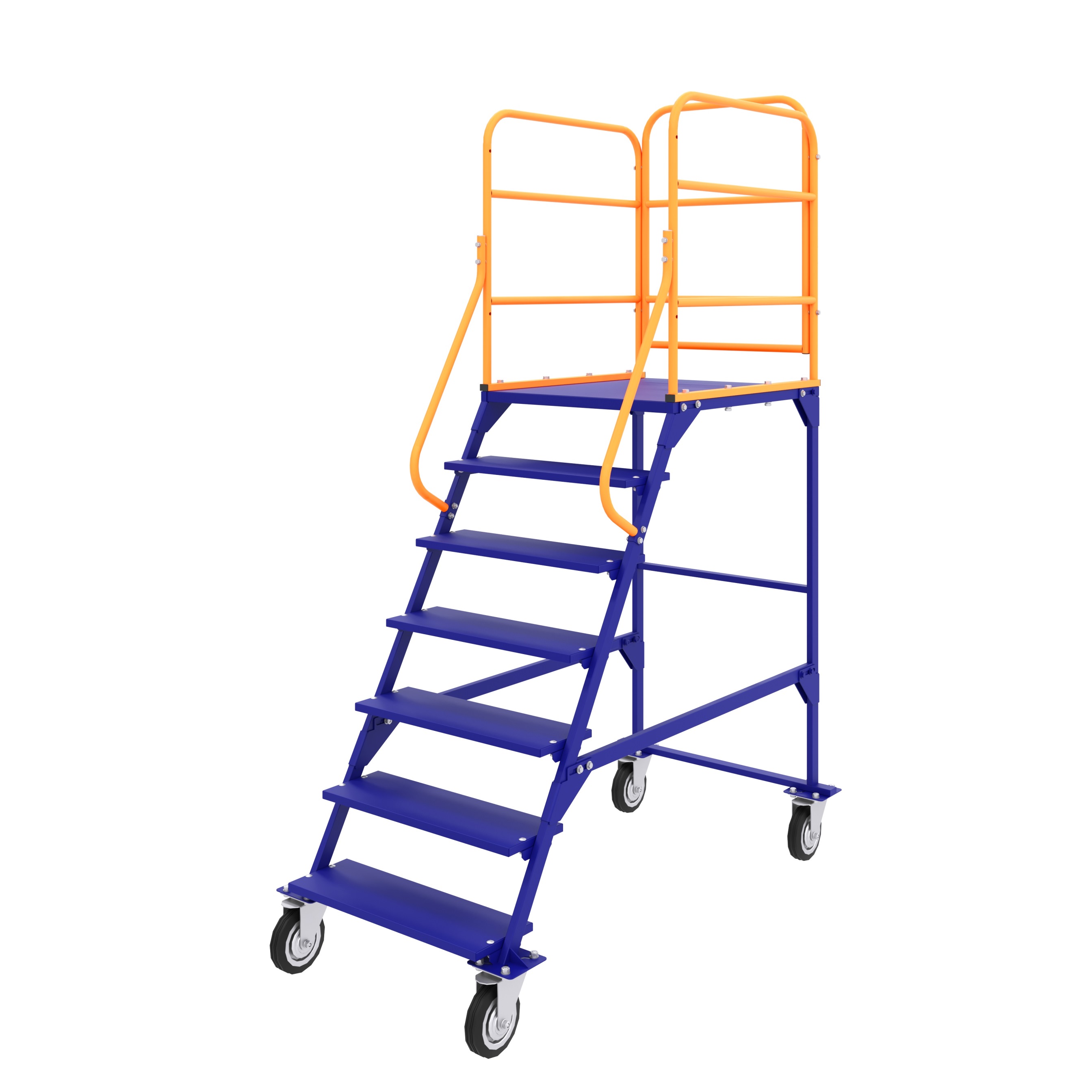 На нашем сайте представлены цельносварные передвижные лестницы с 10, 6 и 5 ступенями. Колесные опоры не входят в комплект поставки и приобретаются