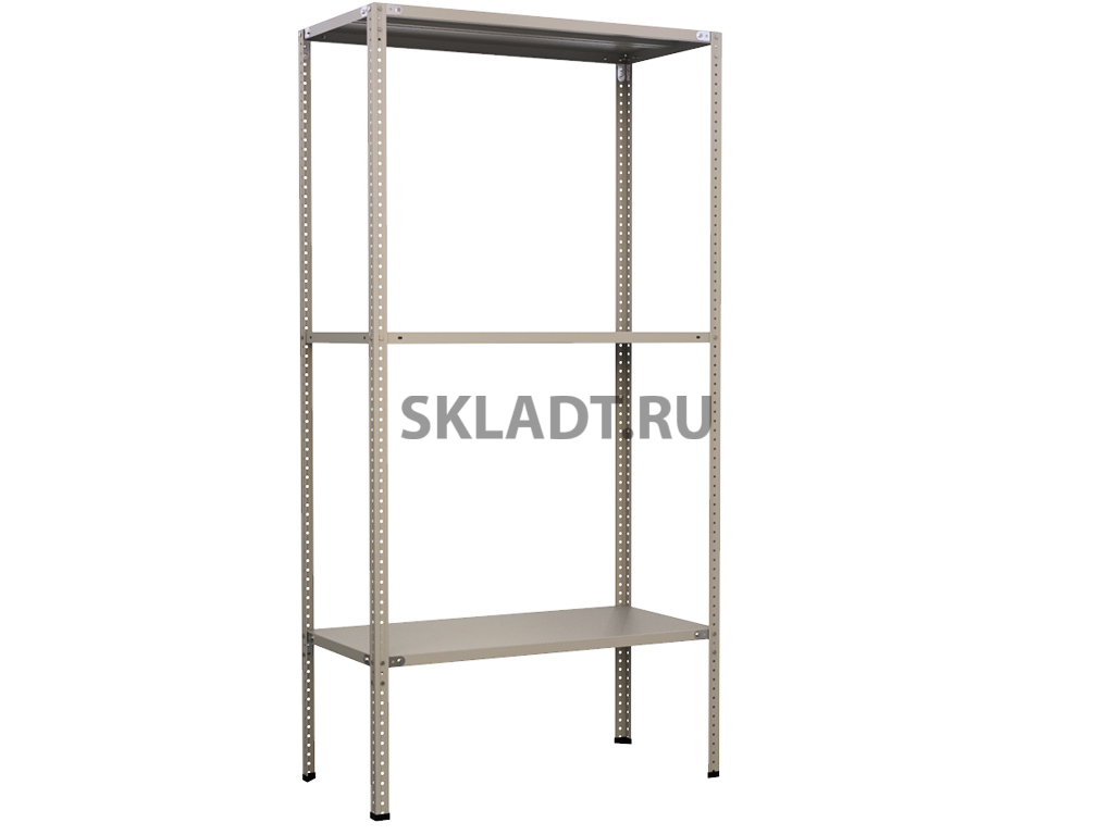 Элементы стеллажа изготавливаются из высокопрочной холоднокатаной стали., покрытие порошковое полимерное производства Россия, цвет светло-серый RAL – 7035.